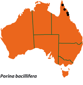 | Endemic to north-eastern Qld where it is corticolous on rainforest trees. | ||