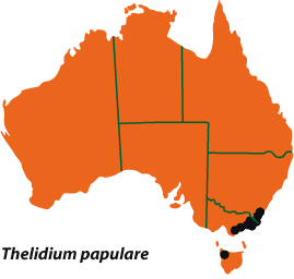 | Occurs on hard Carboniferous limestone in south-eastern N.S.W., eastern Vic. and Tas. A common species in most of Europe; also in Russia, North Africa, North America and New Zealand. | ||