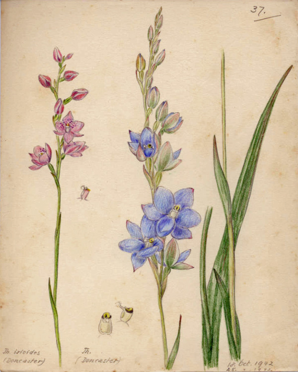 Paul and Marielies were both fascinated by Australian flora, and this interest was passed on to their children and their friends. They regularly set out to explore the natural bushland near their home, and then later they travelled throughout Victoria looking for fungi, fossils, birds, shells, insects and, of course, wildflowers. They had a particular interest in orchids. They collected specimens of each orchid species they found. They recorded name, location and date, and used coloured pencils to draw them; botanically correct, true to size and colour. Their last drawing was completed in 1951.