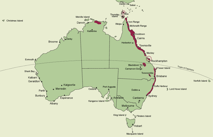 A genus of c. 10 species distributed in northern Australia, including Torres Strait Islands, and on the east coast extending from Cape York in Queensland to central New South Wales. The genus possibly also occurs in south-eastern parts of Papua New Guinea. Latitudinally species of Arthrochilus are distributed from about 10° S on Moa Island in Torres Strait to about 33°50’ S in the northern suburbs of Sydney. State occurrence: Queensland (including Moa and Thursday Island), New South Wales, Northern Territory.