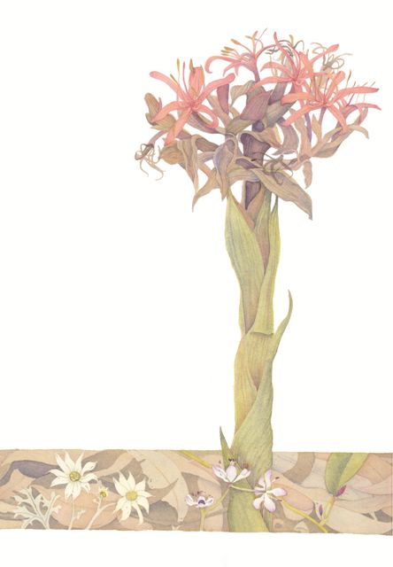 Fiona sketched flora in the Gardens that appear in a number of the finished paintings, along with others from Mt Annan and Newcastle Region Botanic Gardens, Sea Acres National Park in Port Macquarie, and various other beautiful places.