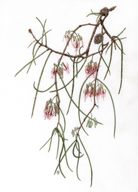 on Casuarina cristata, Dalby district (Lake Broadwater), QLD. Painting by Gillian Scott.