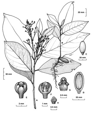 Habit, flower, stamen & glands, staminode, fruit, seedling