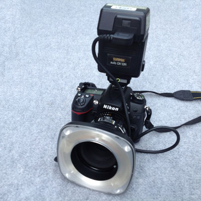 The Nikon 'ring-flash' is actually two strobe-lights, one on each side of the lens. |
